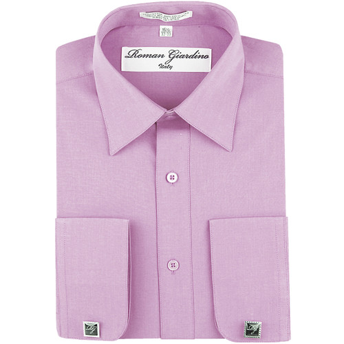 Men's Long Convertible Collar Dress Shirt with Free Cufflink - Lilac Snow